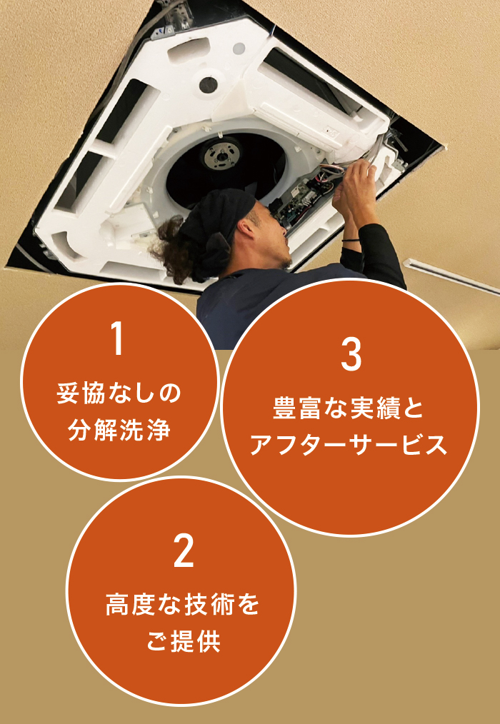 エアコンには、温度の高い流体から温度の低い流体へ熱を移動させる機器である熱交換器という部品が使用されています。そこに水垢やホコリなどの汚れが蓄積していました。室内機を部品単位で分解して、1つずつ丁寧に洗浄しました。見た目もキレイになり、熱交換器フィンの詰まりも解消されました。